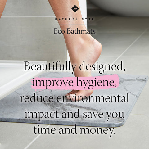 Our luxury natural stone bath mats are made with 100% sustainable materials. A great eco-friendly way to keep your bathroom dry and clean.